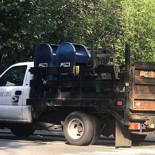 “USPS Mailboxes Removed in Some New York Area Neighborhoods,” reported NBC News in New York City, speculating that it was politically motivated.