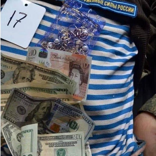 It turns out that when they weren't committing atrocities, the Russians occupying Bucha and Irpin (among the most wealthy suburbs in that region) were looting homes. Like, picking them clean in some cases.